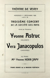Après la Première Guerre mondiale, elle revient à Paris. Georges Enesco intervient alors auprès de l’État roumain pour s’assurer que la jeune musi-cienne pourra y achever ses études musicales ; en 1921, il la fait jouer à Lausanne.